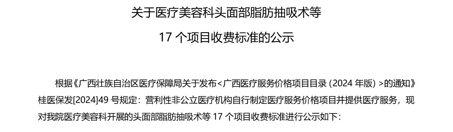 - | 面部注射物抽吸术 | ①专家面诊评估定制治疗方案②局部浸润麻醉③面部局部堆积抽吸④术后观察护理指导 | - | 每处 | 5000 | 该项目为医保目录外的自费项目,不纳入医保结算报销。按每处收费。 |